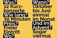 In dieser Saison öffnen sich die Türen des Brucknerhauses regelmäßig für kostenlose Kurzkonzerte, bei denen Studierende der Anton Bruckner Privatuniversität Programme präsentieren. Nicht nur versierte Konzertgänger:innen sind willkommen, sondern auch und gerade diejenigen, die einen neugierigen ersten Blick in ein Konzerthaus werfen möchten. Im Rahmen von kostenlosen 30-minütigen Konzerten wird das Foyer des Mittleren Saals so zum Begegnungsraum für Musikinteressierte: Die Türen des Brucknerhauses stehen dabei für alle offen – um gemeinsam Musik zu hören, bei einem Getränk zusammenzusitzen und miteinander ins Gespräch zu kommen. Einige Termine sind sogenannte Pre-Concerts: Hier treten Künstler:innen mit dem jeweiligen Abendprogramm in den Dialog, eröffnen neue Klangräume und machen bestenfalls neugierig auf das, was folgt. Wir laden Sie herzlich ein, bei uns zu verweilen und dabei vertrauten, ungewohnten und überraschenden Klängen zu lauschen. Auf bald bei uns im Foyer! Welche Künstler: innen auftreten, wird vor den jeweilgen Terminen bekanntgegeben, das konkrete Programm bleibt bewusst bis zum Konzert im Geheimen. Der Eintritt ist frei, kostenlose Zählkarten sind immer ab 1 Monat vor der Veranstaltung im Online Ticketshop sowie im Brucknerhaus Service-Center erhältlich!